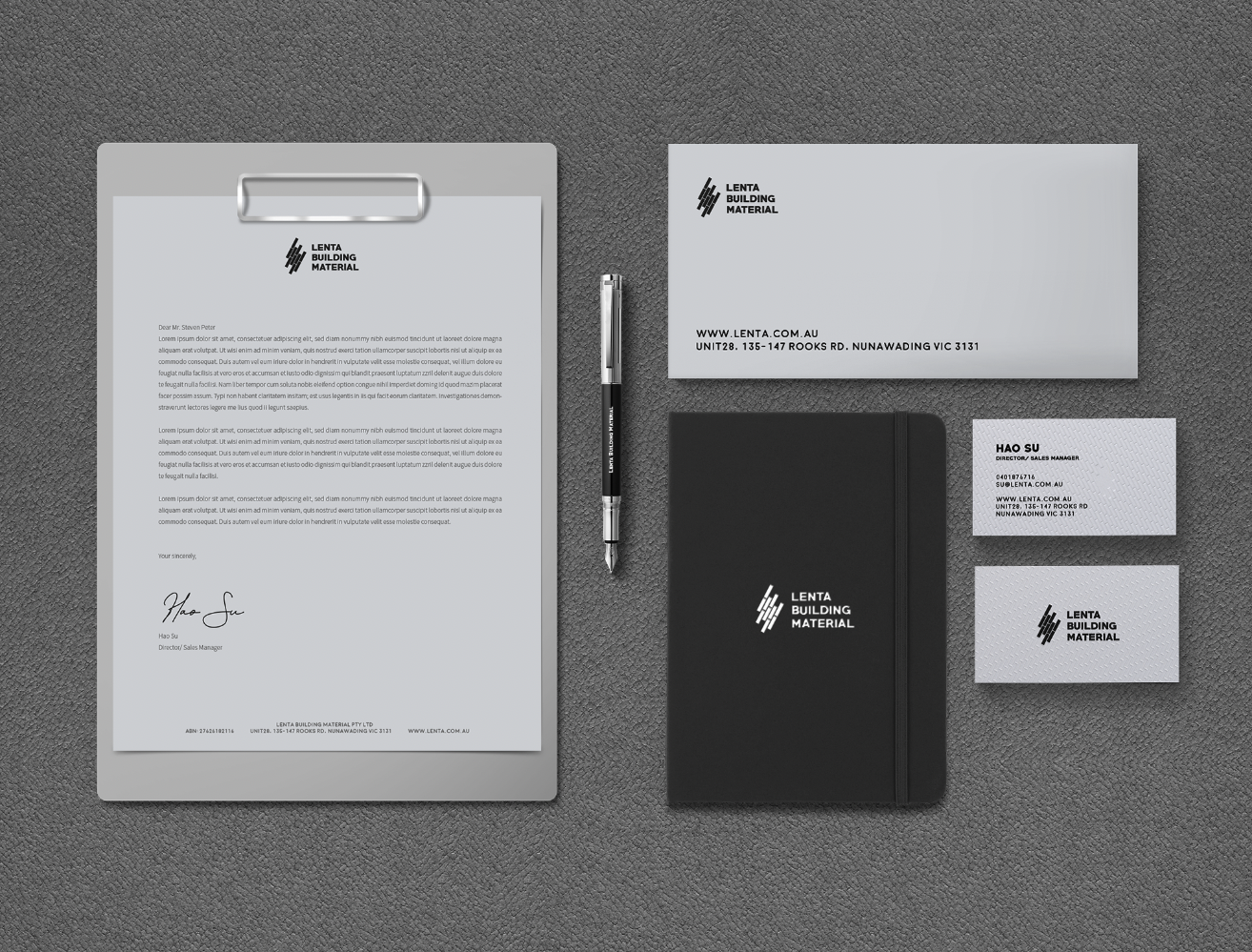 Through a clean and sophisticated visual identity, Lenta Building Material establishes itself as a modern, high-quality supplier with a design-driven approach to construction materials.